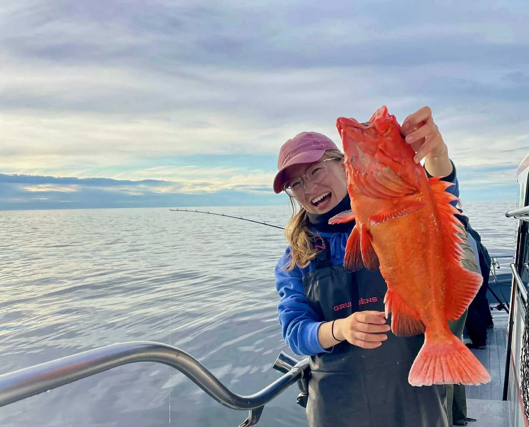Our deckhand, Mi-Hye, brings a lively spirit and genuine care to every fishing trip. With a deep love for the ocean, she’s always ready to lend a helping hand and ensure everyone aboard has a safe and enjoyable experience and catches lots of fish!